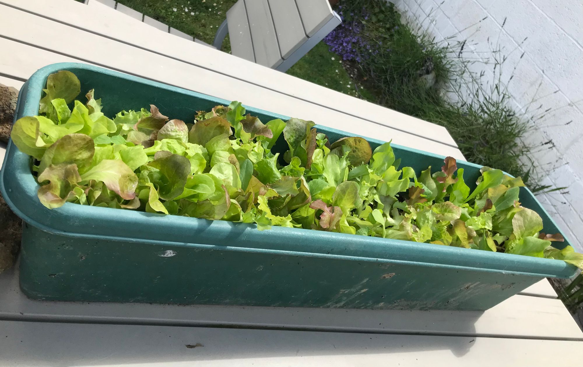 So get some soil into your planting box, spread some seeds thinly on top and cover with about 1.5 cm of soil. Keep the soil moist at the start but don't over-water and just remember to keep the soil moist always, especially through dry conditions. I have my lettuce box up on the garden table, far above the snail grub crawl I'm hoping! If you don't have a garden, get yourself a window box for your apartment balcony or your windowsill. The plant box that I am using is a plastic window box. I bought this many years ago and it's still in perfect condition. But I wouldn't buy one today. If you ask about, anyone who is into gardening often have a load of empty plastic plant pots filling their shed and might be very glad to offload a few to you. A skip I recently saw in our neighbourhood had at least 40-50 garden pots in it, plastic and terracotta. All sizes. I grabbed a few but I wish now I had taken the lot!