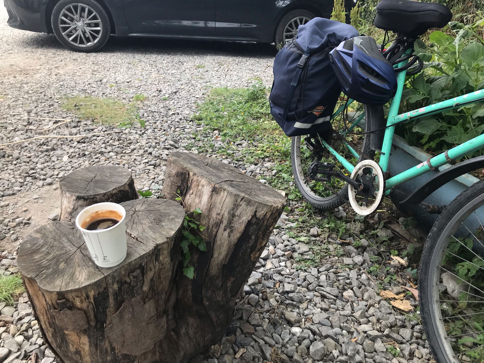 I popped into the cafe then and got a coffee. In a compostable cup. I took a little break on a garden seat under a tree next to my bike. And placed my cup on the wooden "table". It was a glorious afternoon. Not a care in the world at this moment. A great day to be alive.